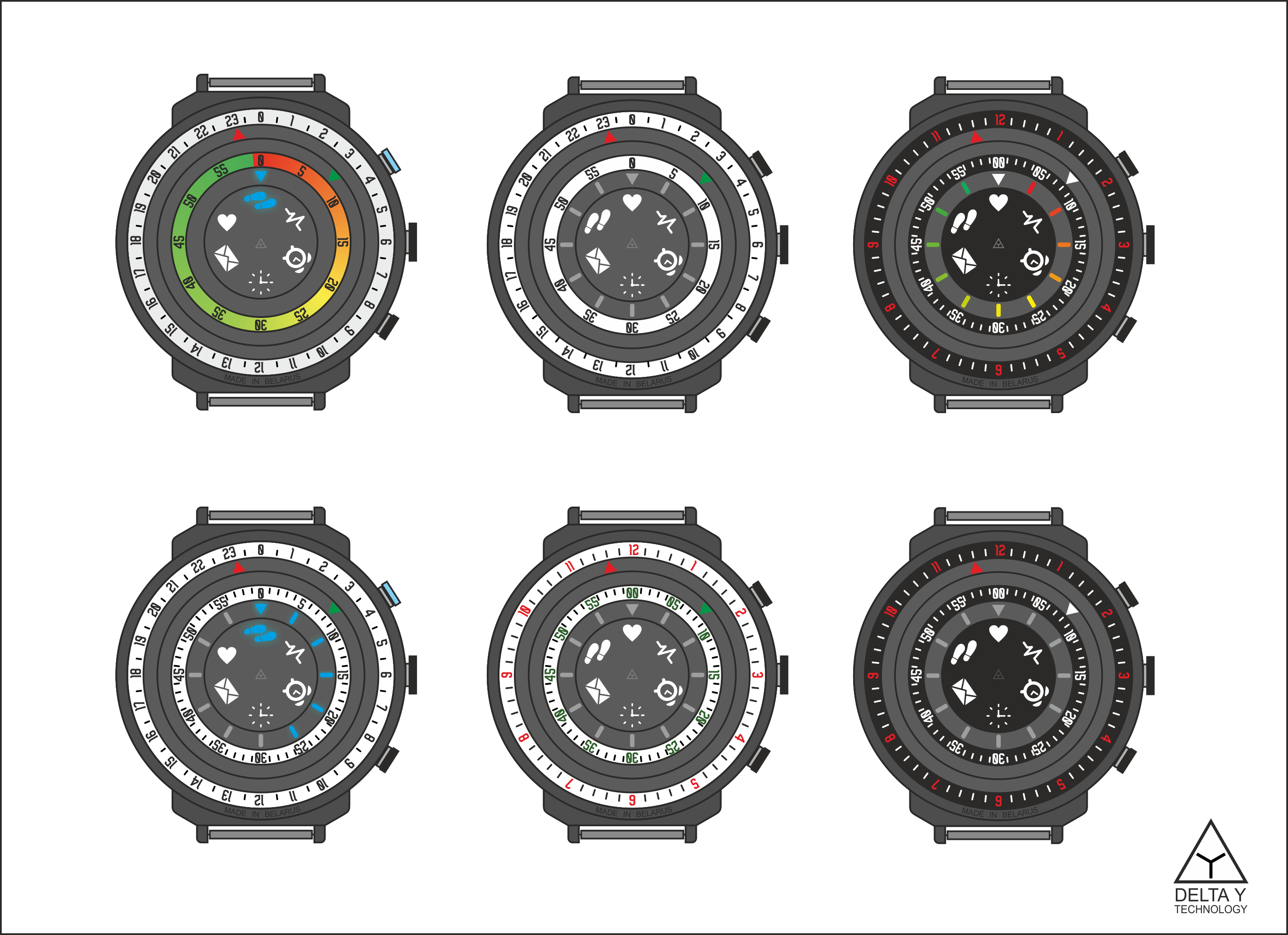 - Seconds, minutes, and hours are located on 3 sides of the triangle